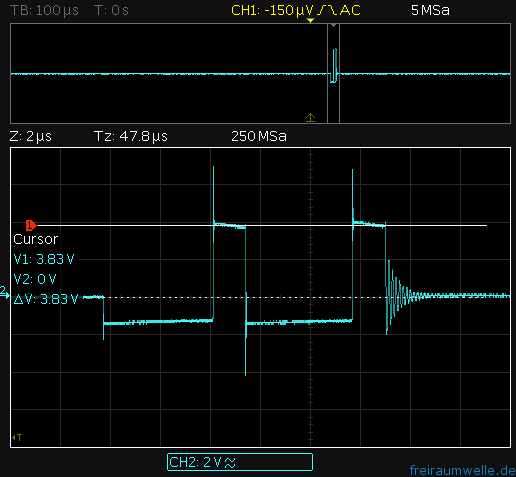 Schwieriger zu sehen ist da schon der Schaltpuls an der Spule (LX).