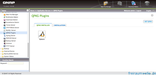 Auf einem Qnap-NAS lassen sich die vom NSLU2-Linux bekannten optionalen Software Pakete installieren und verwalten. Zunächst aktiviert man über den Webbrowser die QPKG-Plugins.